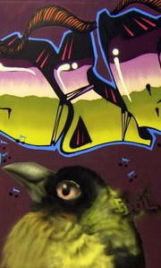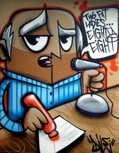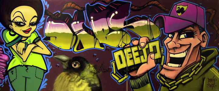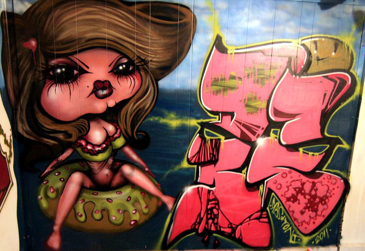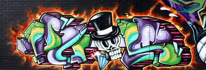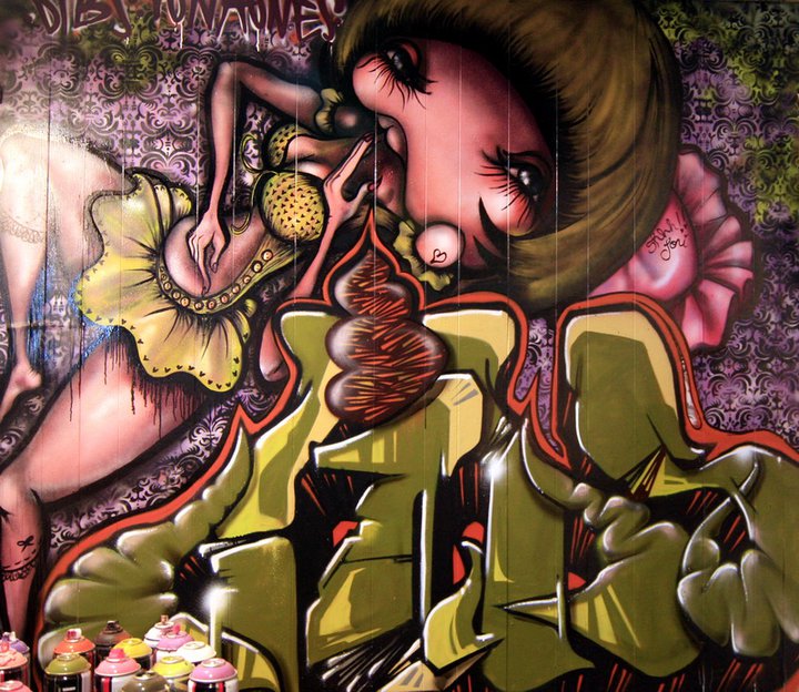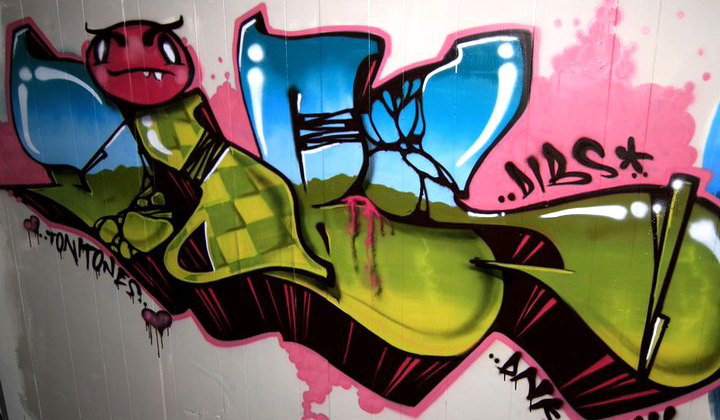 Jason Carle aka Dibs was very much a part of the perth graffiti scene in his early years, until he developed and pursued a name for himself in the perth dance music scene. He developed his interest as a means to explore and express his creative nature, away from his very technical computer based career. Only in recent years has he rekindled his passion with street art, along side his partner Toni. Jason predominantly approaches his street art work utilizing freehand aerosol techniques incorporating lettering and a mixture of fantasy characters influenced by technology.